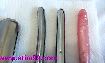Urethral play with a bladder tool and a dilator with vibration. Close up sounding.
