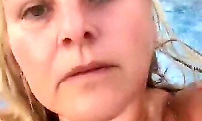 hook-up intorno alla piscina con un big boobed cougar
