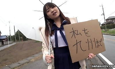 Ample breasted Japanese chick Mikoto Mochida gives a fine blowjob in the camper