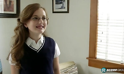 Luxurious student with small breasts Jessica hooks up with perverted old teacher