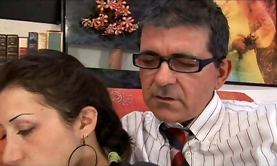 la grand-mère vive en bas se fait lécher la chatte puis se fait baiser dans un délicieux plan à trois ffm