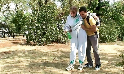 une milf en sueur laisse ce baiseur excité la baiser au bord de la piscine, la différence d'âge soit maudite