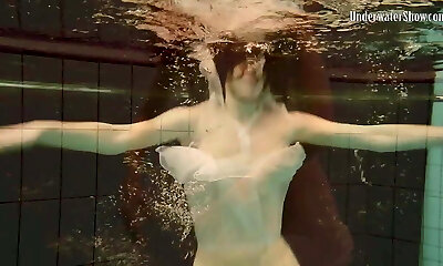 fantastique chair pâle petite brune femme dans la piscine sous-marine