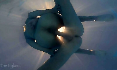 remplir les deux trous et la tarte à la crème anale dans la piscine sous-marine film gopro
