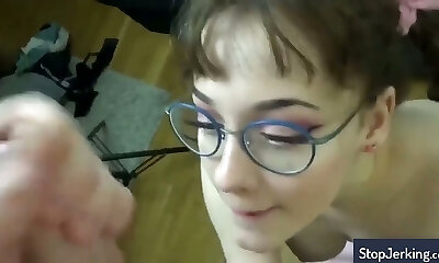 pov tiny titty teen vous montre qu'elle est une bonne fille en avalant