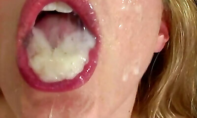 pas de fellation des mains de près. bouche de sperme pulsante. hirondelle creampie orale (cim)