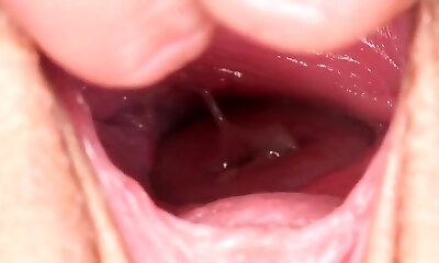 Cuddly dame is opening up saucy vagina in close up and havi